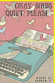 Forward by Steve Shultz & afterword by Andrew K., an essay about a writer losing their writing. Okay. Birds. Quiet. Please. From the person who typed-up Poetic Poverty & SLACKER AD—NAUSEAM, okay birds quiet please is the third collection of words printed on a stack of paper that is called a book, written by Andrew K. Here we find words about the moment before the moment, about spacetime and jumping into Lake Michigan. Here is a writer not at the height of his powers, simply, doing and being and trying to figure out what any of this madness means. okay birds quiet please. It is a book, of words, from the number one selling absurdist poet. Andrew K lives a life surrounded by cats and books. Andrew K.’s future plans are as unclear as his past plans, and he told the editors he’s going to move out of the United States soon, where wherever he ends up, he’ll write little books of absurd poetry until the sun explodes.