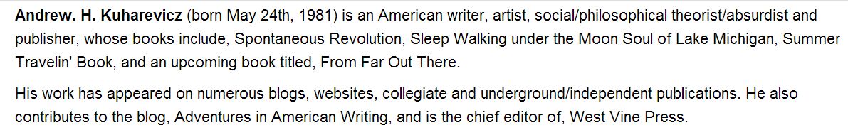 7 thoughts on “The Past, The Future, The Now, of Andrew H. Kuharevicz